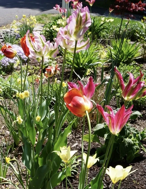 The gardens of an 1830s historical home in Grafton, MA are brought to life with flowering perennials and shrubs that bloom in succession from early spring to frost.
