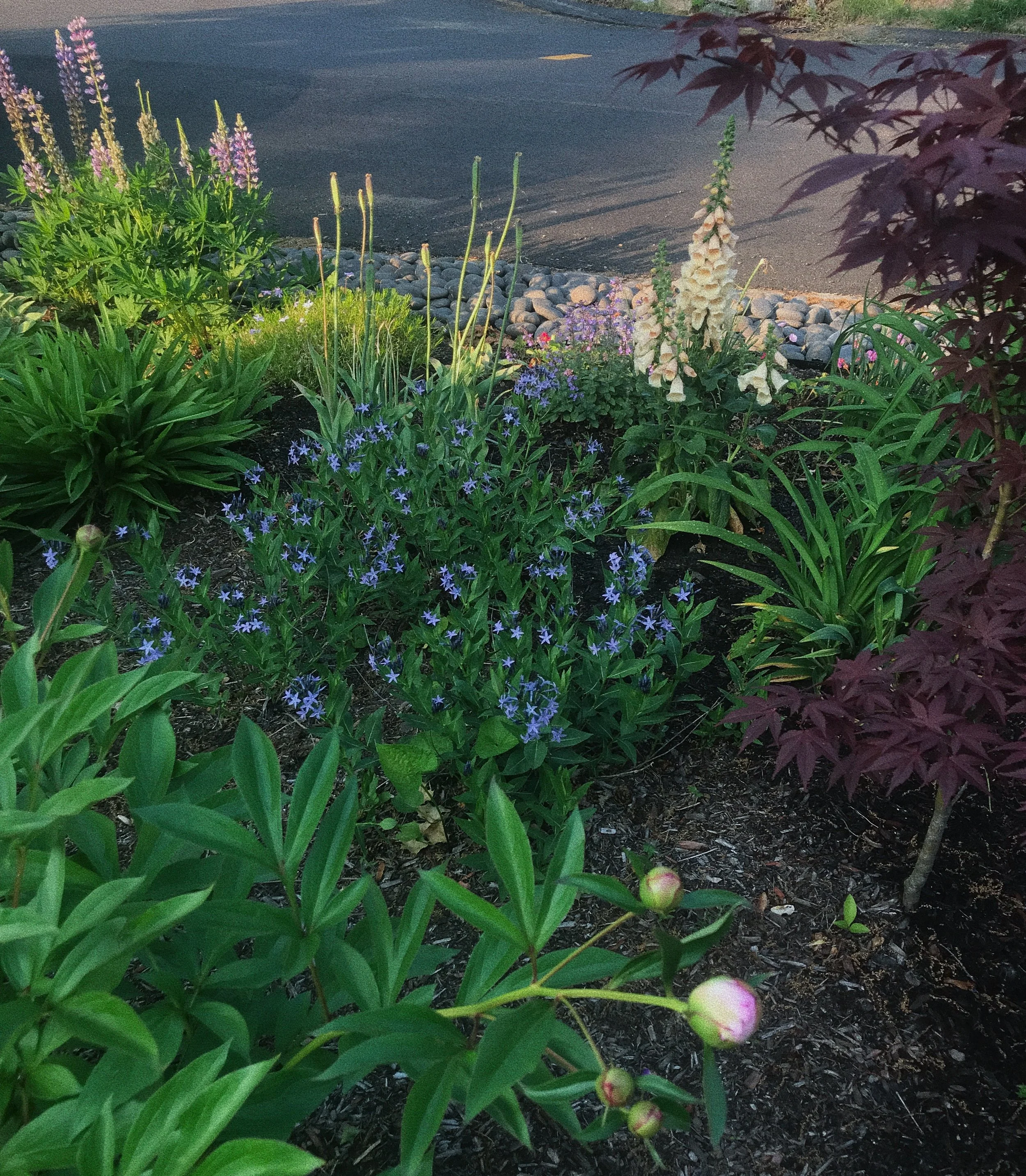 Project Goals: Extend the bloom time of this street-facing garden and create consistency in the landscape by repeating varieties throughout the property.